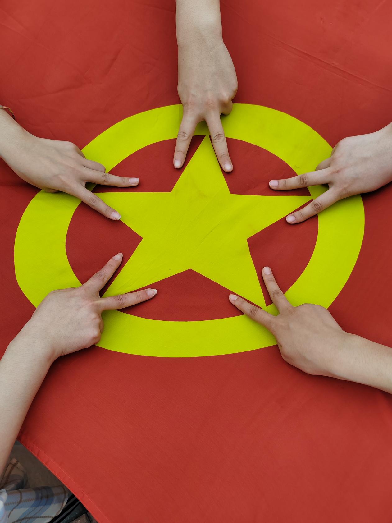 最后各小组组织开展了我与团旗合影活动,下面就让我们一起欣赏这些创意无限的好照片吧。