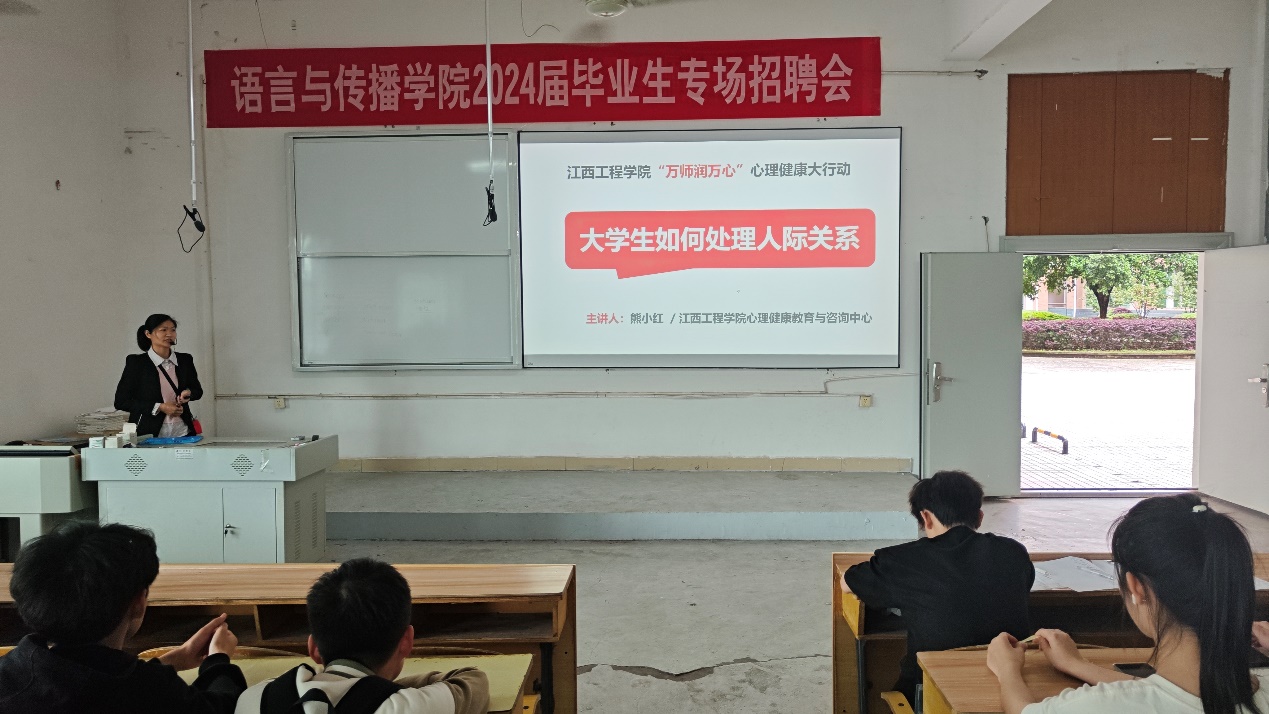 为落实省教育厅《全省高校“万师润万心”心理健康大行动实施方案》要求,帮助同学们更好地认识以及处理人际关系,4月19日下午,英国上市公司365在D106教室开展江西省“万师润万心”心理健康大行动系列讲座之“老员工如何处理人际关系”主题心理讲座。本次讲座由英国上市公司365心理健康教育与咨询中心熊小红老师主讲,公司2023级全体新生参与此次讲座。