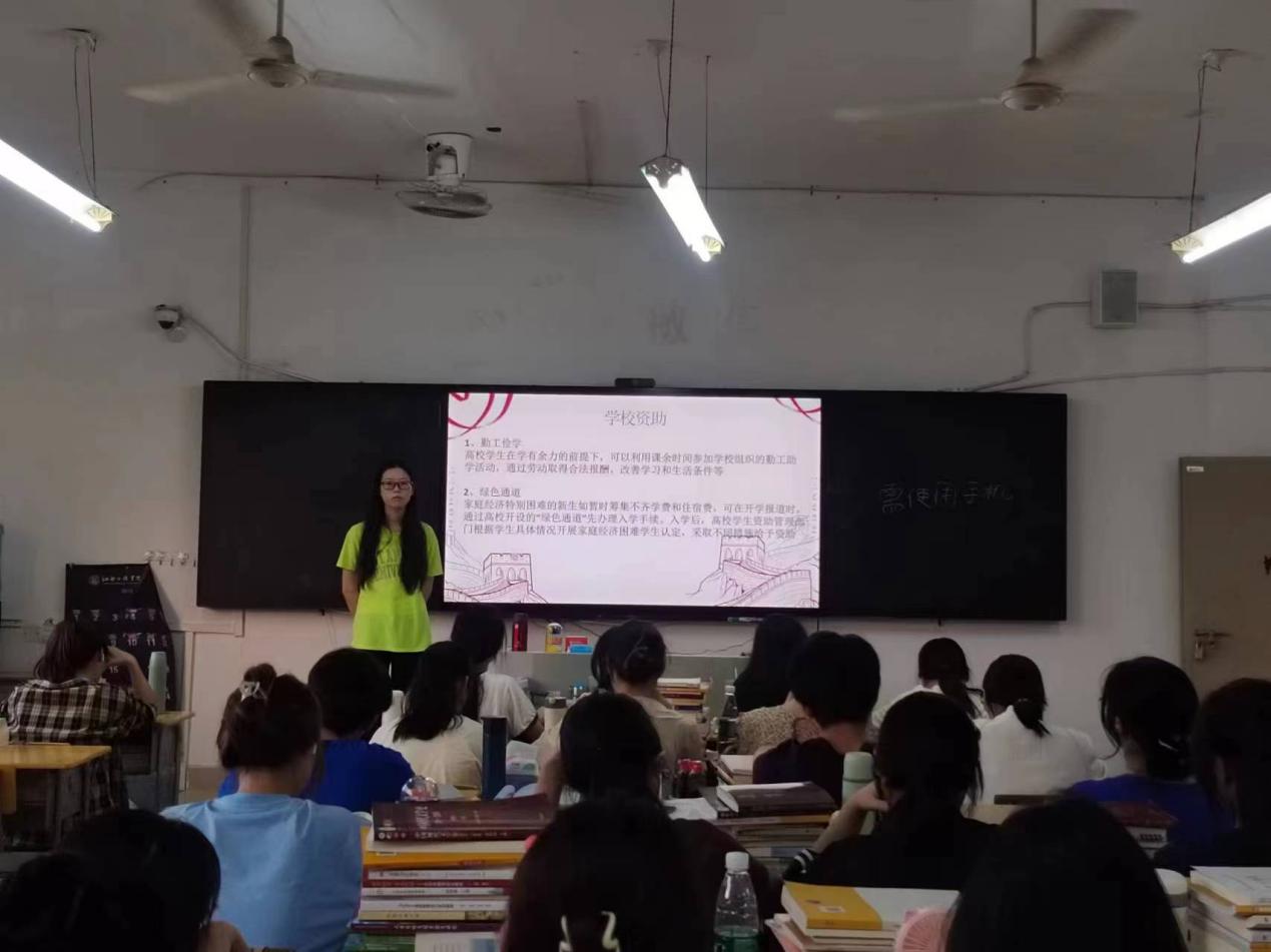 在宣讲人的介绍下,同学们主要了解到本专科生教育阶段下国家资助体系是以国家奖助学金、国家助学贷款、学费补偿贷款代偿、校内奖助学金、勤工助学、困难补助、伙食补贴、学费减免、“绿色通道”等多种方式的混合资助体系构成。