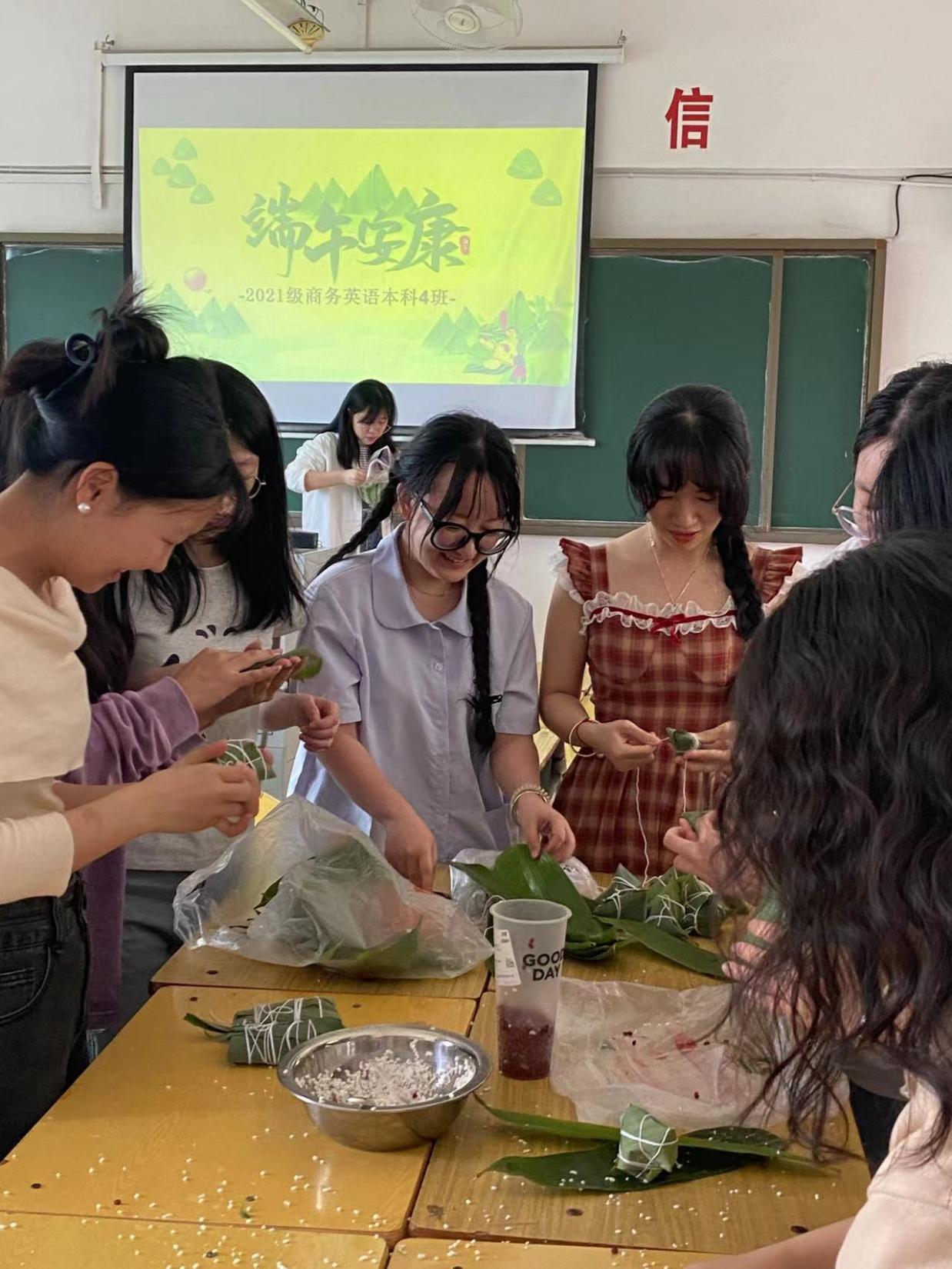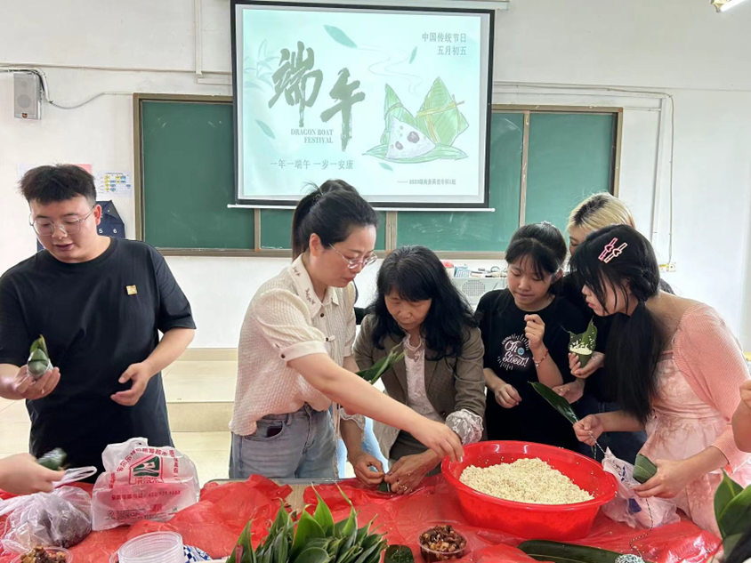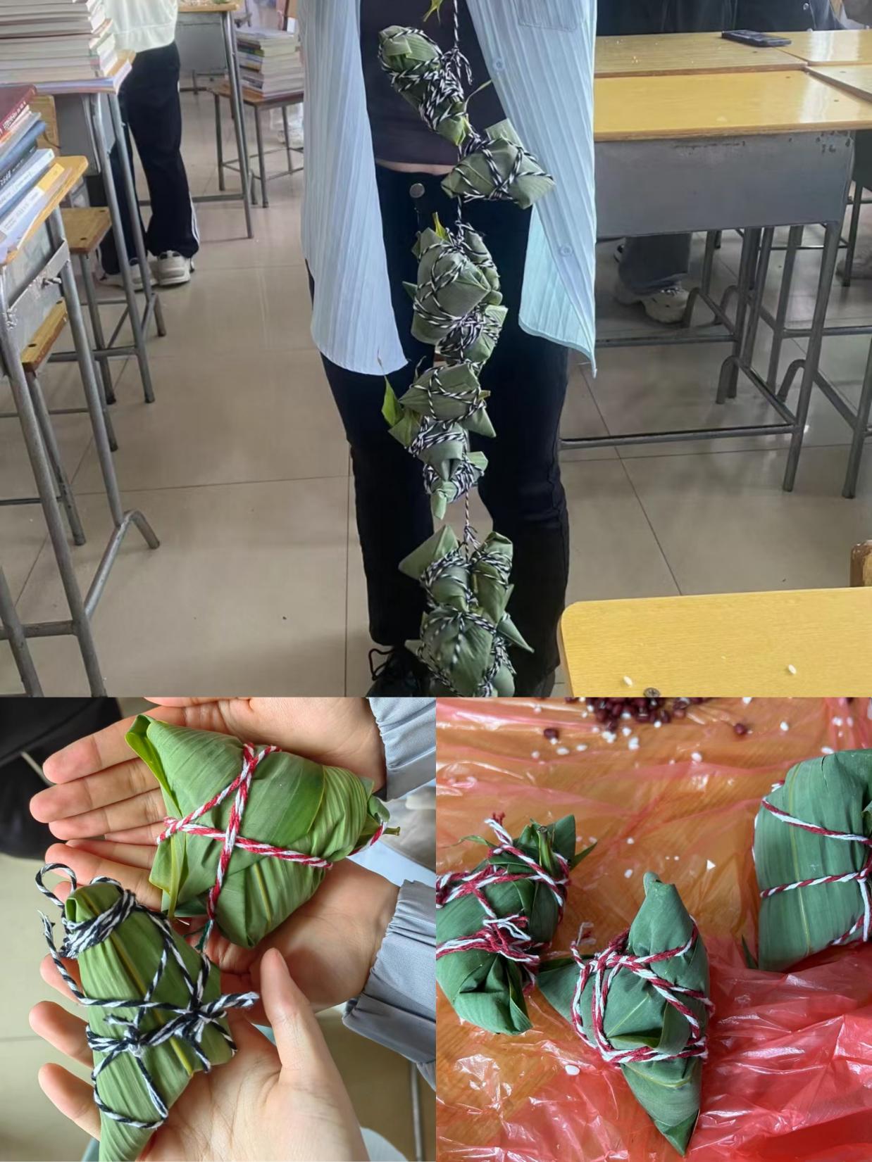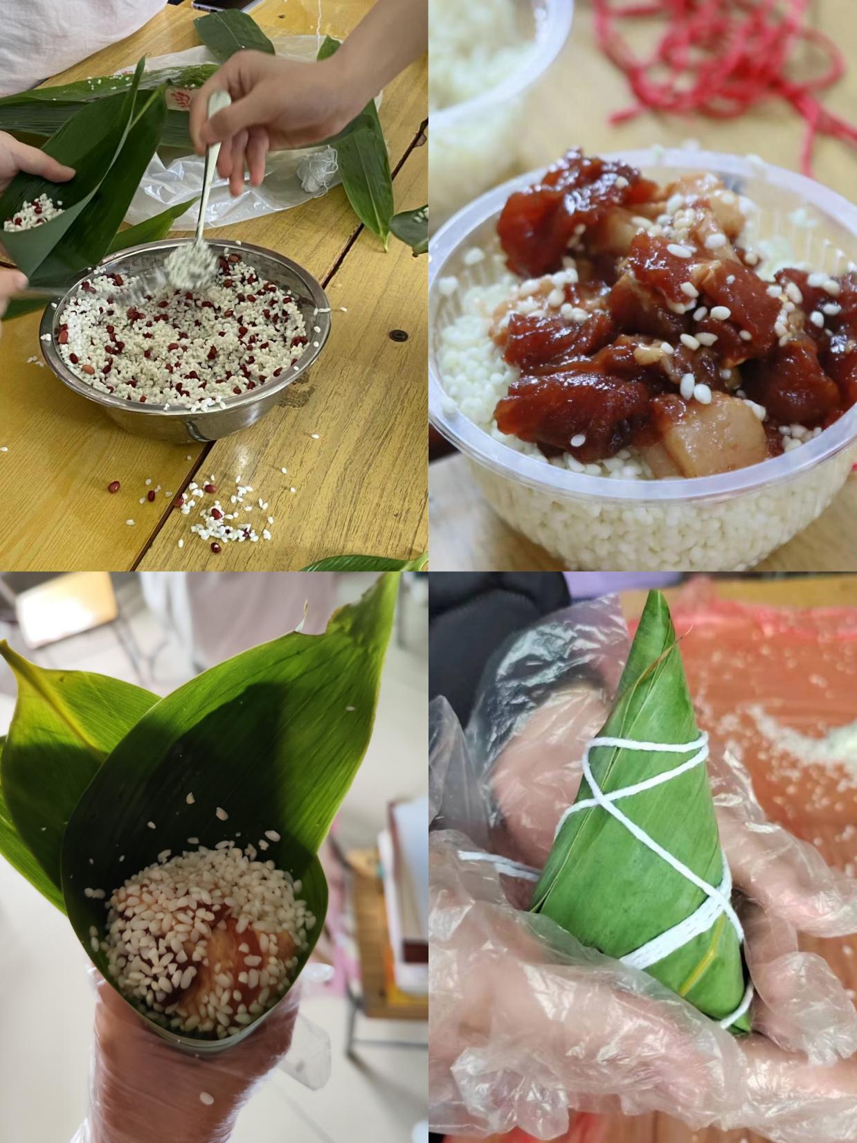 虽然很多同学都是第一次包粽子,但丝毫不含糊,大家相互学习、请教,整个活动现场充满了欢声笑语,洋溢着节日的浓郁氛围。