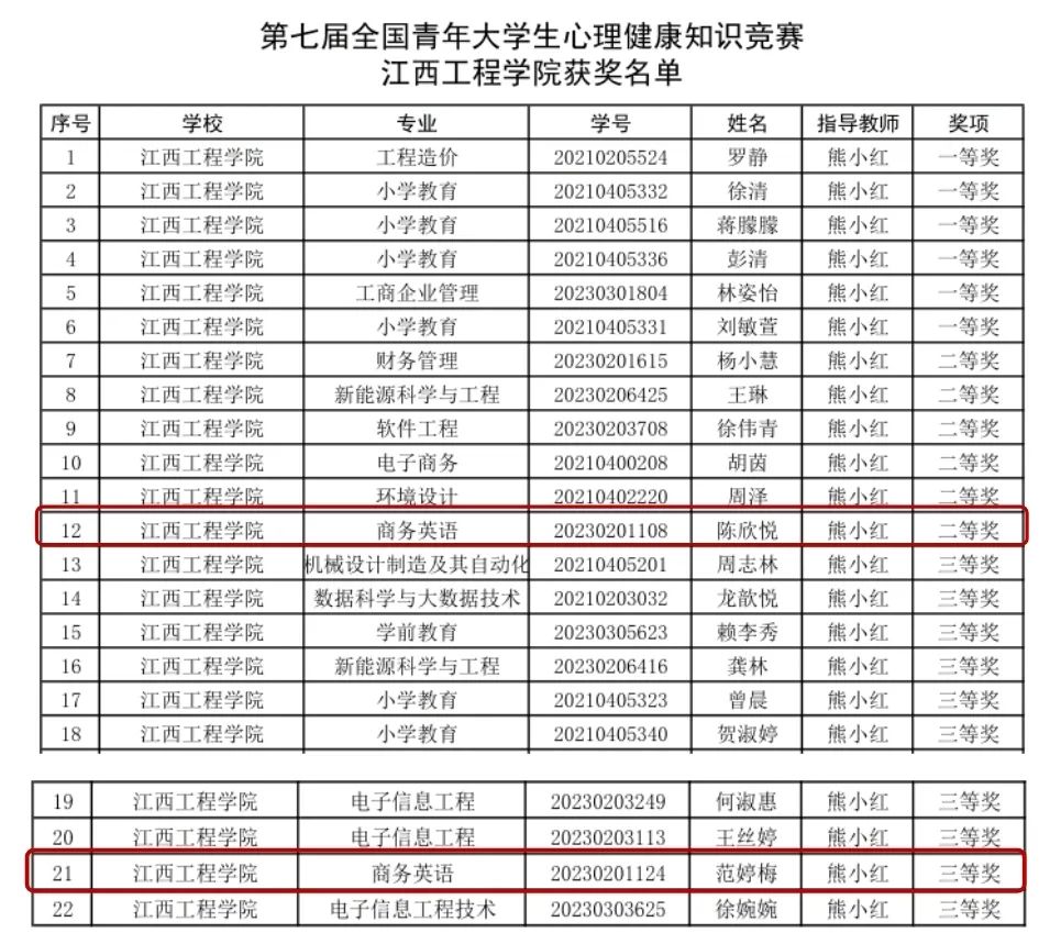 为进一步宣传普及青年老员工心理健康知识,提高青年老员工心理健康意识、心理防护意识和自我心理调适能力,促进青年老员工心理健康发展,营造良好的校园心理健康文化氛围,学院积极动员,精心组织员工参加第七届全国青年老员工心理健康知识竞赛,公司学子陈欣悦、范婷梅分别取得二等奖和三等奖的好成绩。