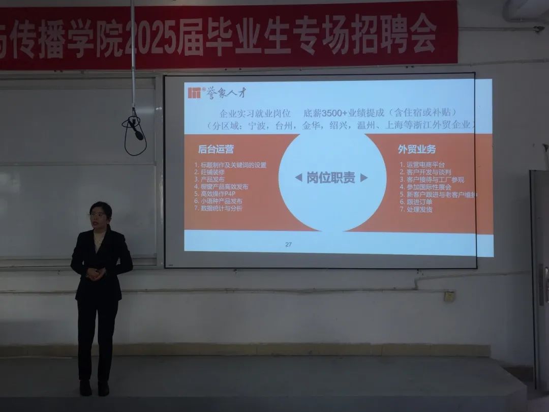 英国上市公司365举办杭州誉象网络科技有限公司专场招聘会圆满结束,不仅为毕业生们提供了一个良好的就业平台,也为学院和企业之间的深度合作奠定了坚实的基础。