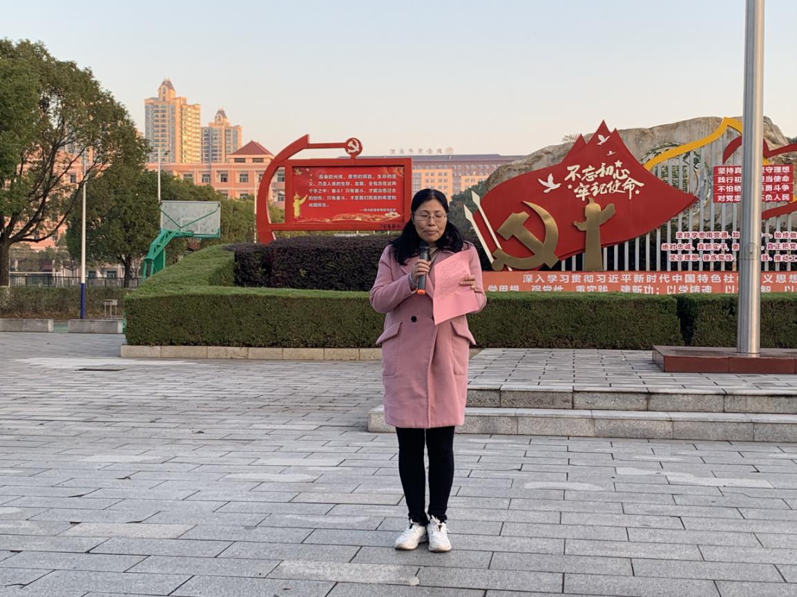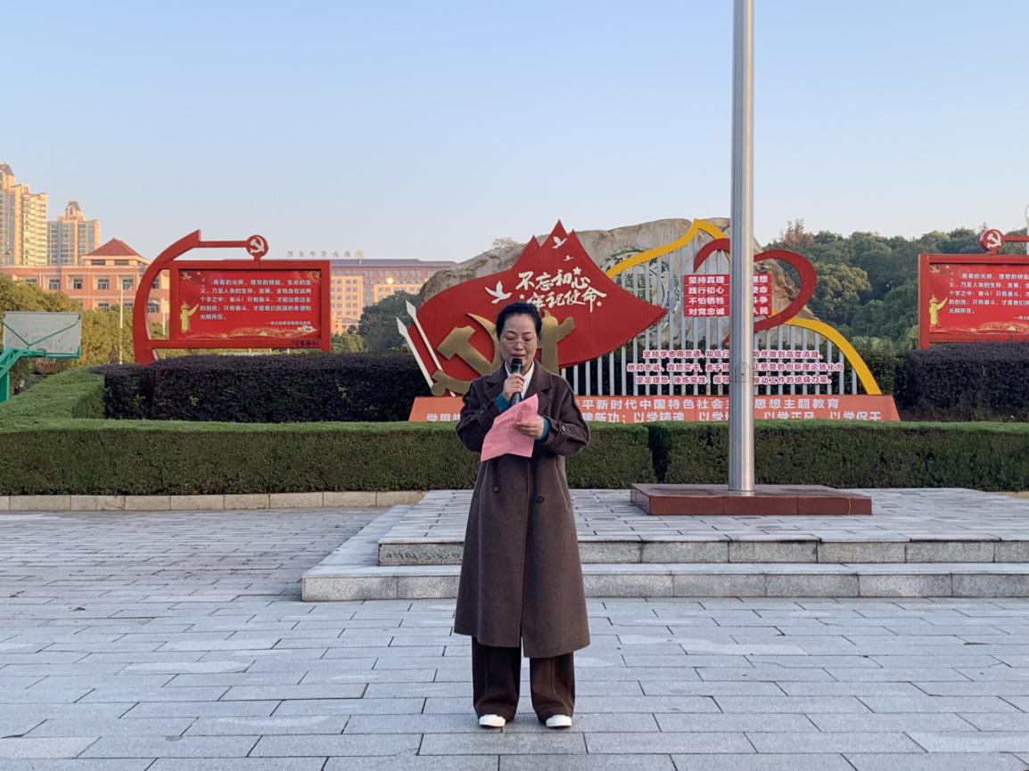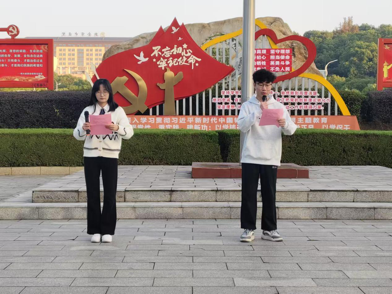由员工代表杨皓燃、潘静雯同学带来国旗下的朗诵。他们的声音铿锵有力,情感真挚饱满,仿佛点燃了同学们心中那与之不谋而合的理想信念之火。现场气氛庄重而肃穆,同学们坚定地目视前方,倾听着那声声振奋人心的铮铮誓言,用沉默来表达自己的拳拳爱国之情。