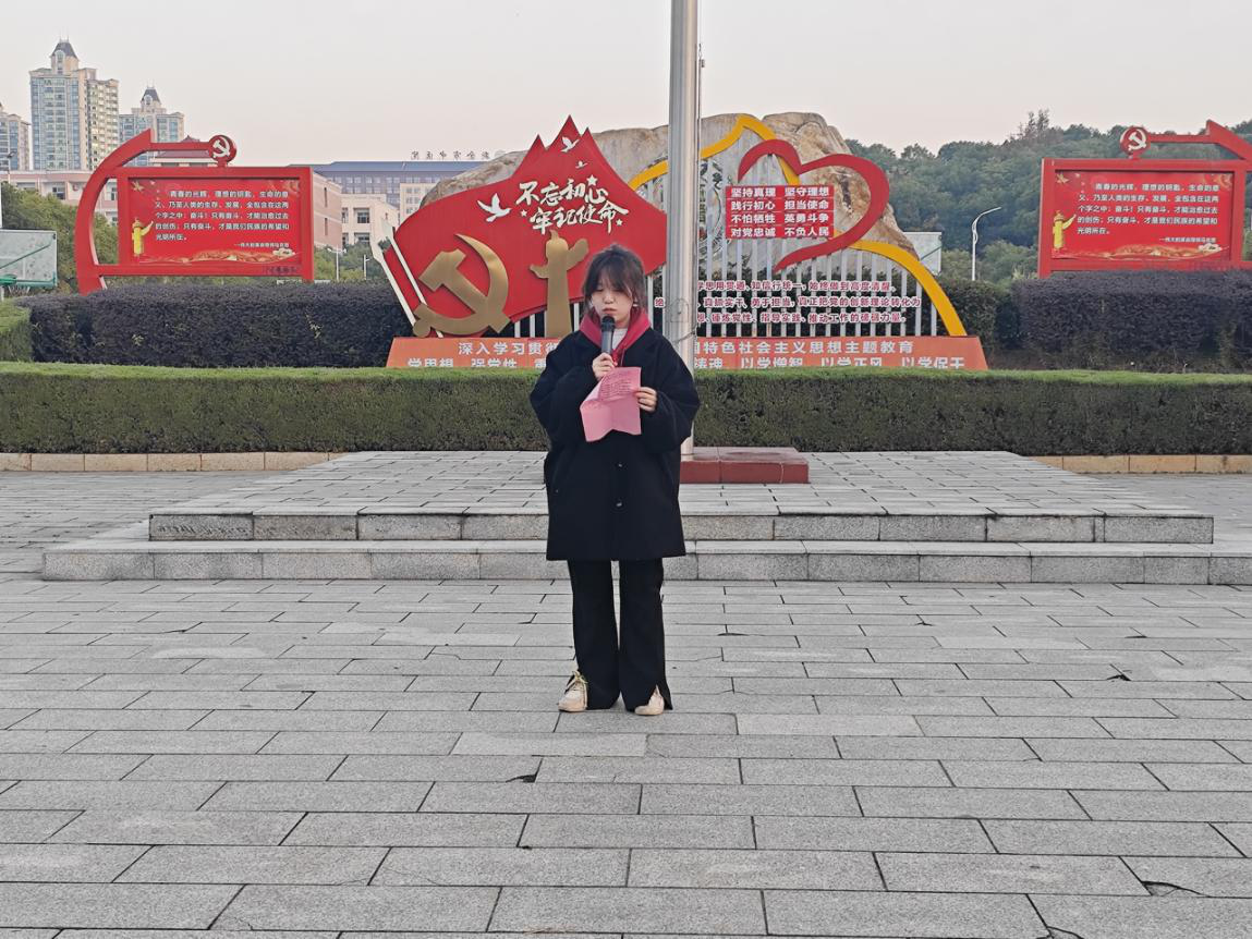 2024级新生代表李玉玲在国旗下讲话。李玉玲谈到了自己对于大学的理解。她说大学是自我成长和发展的一个重要阶段,并告诫同学们要始终怀有一颗“求学若渴 ”的心,不断地学习和成长,提升自己的知识水平和素质水平,探索大学中生命的奥义。她在最后强调同学们要同舟共济、携手奋进,以昂扬奋进的姿态共同度过大学的美好时光。
