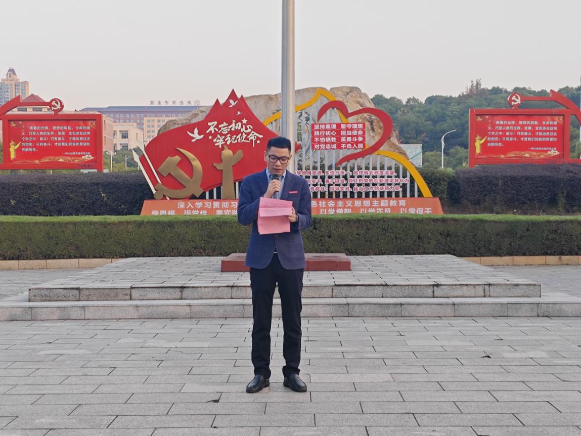 公司党总支书记谢丽丽发表了热情洋溢、慷慨激昂的讲话。她重点围绕推动爱国主义教育工作走深走实,全面贯彻落实立德树人根本任务展开讲话。她指出青年肩负着历史的使命与重担,应当坚定理想信念,锤炼品德修养,涵养爱国情怀,始终不忘“勤朴敏信”的江工校训,做一名有真才实干的中国人。