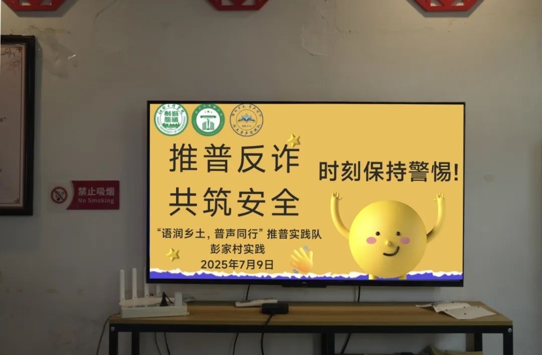 下午,实践队来到罗坊镇彭家村新时代文明实践站——“一老一小”幸福院,紧扣“推普+智惠民生”主题,针对老年人群体与少年儿童群体开展“一老一小”专项活动,重点进行防诈骗安全知识宣传,让普通话成为精准传递惠民信息的智慧工具。