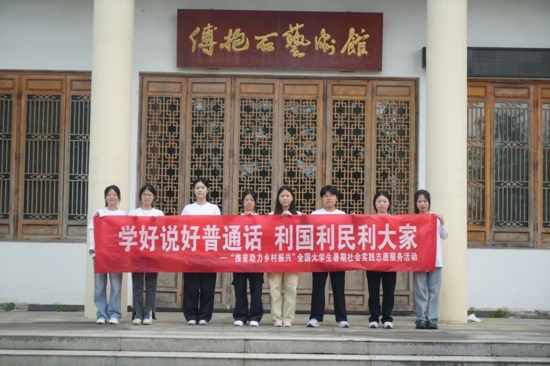 最后,走进傅抱石艺术馆,队员们通过普通话介绍傅抱石的艺术成就与文化贡献,将书画艺术中蕴含的家国情怀与乡土情结转化为通俗易懂的语言表达,让群众在艺术熏陶中感受文化魅力,推动地方文化资源借助规范语言传播,更高效地融入乡村精神文明建设,为乡土文化传承赋予智慧动能。